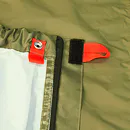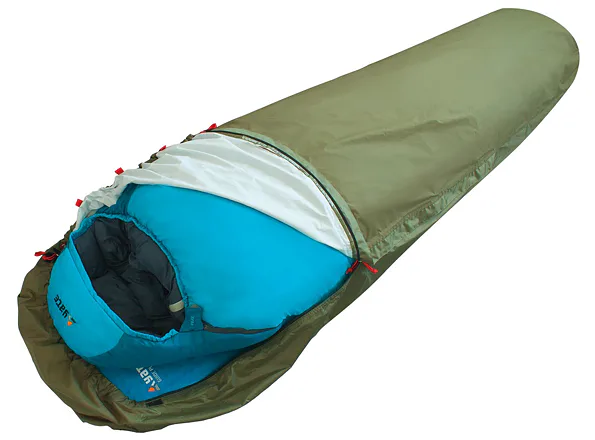 Zipy na obou stranách jsou kryté légou a umožňují pohodlné používání. Na pravé straně je zip skoro až k chodidlům, aby byl kompatibilní se spacákem se zapínáním vpravo. Pytel je dostatečně velký pro všechny druhy spacáků a můžete do něj vložit i karimatku a některé osobní věci. Vnitřní kapsa na doklady. Moskytiéra v oblasti hlavy.
