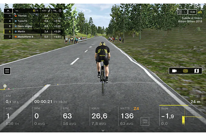 Užijte si indoor cycling bez omezení. Vyberte si své oblíbené trasy z jakéhokoli kontinentu. Ponořte se do velkých přírodních parků Ameriky nebo se vyzkoušejte na mýtických výstupech v Alpách nebo Pyrenejích. A pokud nemůžete najít trasu, která se vám líbí, můžete přidat svou vlastní.