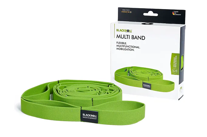 BLACKROLL® MULTIBAND - GYMNASTIKBAND (280 cm), umožňuje provádět funkční pohybové vzory a posílení svalových skupin celostním způsobem. Zlepšuje pružnost a umožňuje pro klouby šetrné koordinační cvičení. Optimální pro uvolnění a pro kombinovaný trénink na posílení a zvýšení flexibility.