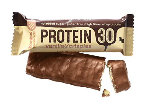 Proteinová tyčinka BOMBUS PROTEIN 30% je rychlý snack s vysokým obsahem bílkovin, které jsou důležité pro růst a udržení svalové hmoty. Je přirozeně bez lepku, potěší vás vysokým obsahem vlákniny, nízkým podílem cukrů a minimálním množstvím použitých ingrediencí. Je vhodná pro vegetariány, celiaky a všechny, kteří touží doplnit bílkoviny chutnou svačinkou.