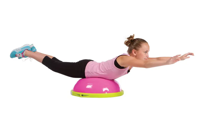 Jednoduše řečeno vypadá jako rozpůlený gymnastický míč s pevnou plošinou (platformou) na straně řezu. Název odpovídá anglickému označení “Both Sides Utilized”, tedy “použitelný z obou stran”. A přesně to je základní myšlenka BOSU®. Můžete ho postavit plošinou na zem nebo naopak. Používá se hlavně k posilování hlubokých stabilizačních svalů, které jsou nejdůležitější pro stabilitu páteře.