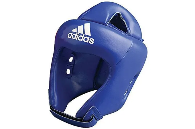 Značková tréninková přilba od firmy ADIDAS určena pro intenzivní trénink boxu, kickboxu a ostatních bojových sportů. Je speciálně tvarovaná a vyplněná pro zvýšenou ochranou tváří, brady a ušních boltců. Je snadno nastavitelná podle velikosti hlavy tkanicí na temeni a manžetami se suchým zipem vzadu (systém zároveň zamezuje pohybu přilby na hlavě při tréninku).