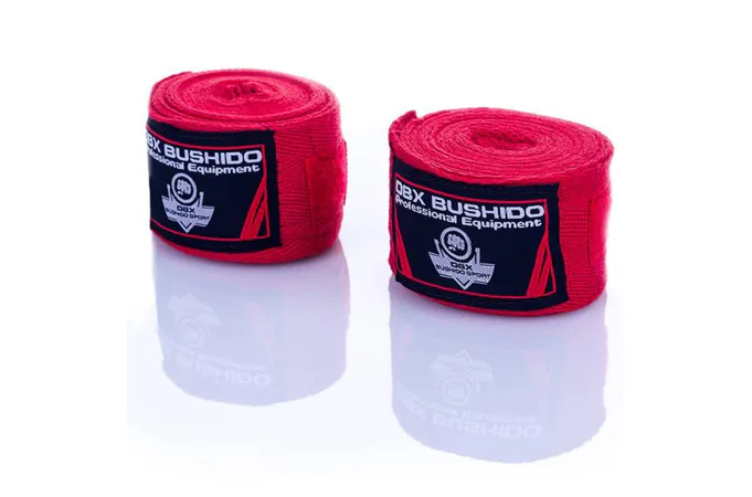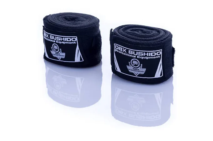Boxerské omotávky - bandáže DBX BUSHIDO. Bandáže jsou nezbytným doplňkem pro trénink a soutěže v kontaktních bojových sportech, doporučují se jako ochrana kloubů a zpevnění zápěstí do boxerských rukavic. Díky bandážím můžete předejít zranění v oblasti rukou a kloubů.
