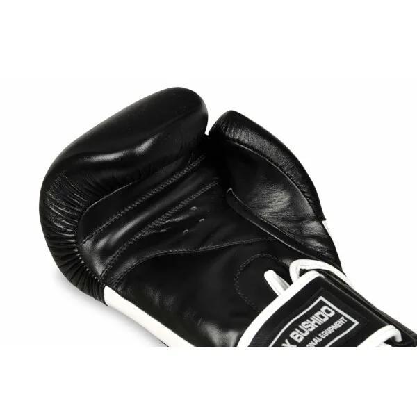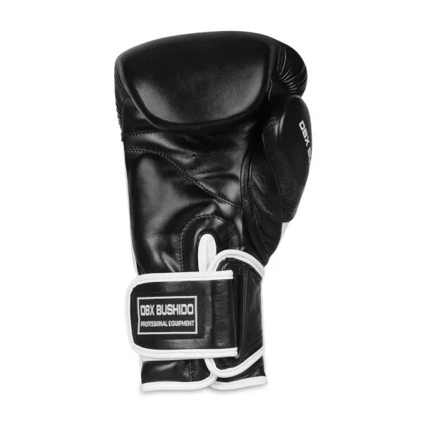 Boxerské rukavice DBX BUSHIDO BB5 jsou vyrobeny z kvalitní, přírodní kůže podšité speciální tkaninou, která odolává poškozením. Hřbetní část rukavice je vyplněná speciální obměnou paměťové pěny, která dokonale pohlcuje údery i během delšího a intenzivnějšího tréninku jak na boxovacím pytli, tak na terči či při tréninku se sparing partnerem. Bezpečnost rukavic zajištuje systém Wrist Protect - dodatečná vrstva pěny v oblasti zápěstí, řemínek mezi palcem a rukavicí, který brání jeho vykloubení a dále šíroký pásek se suchým zipem pro zpevnění zápěstí.