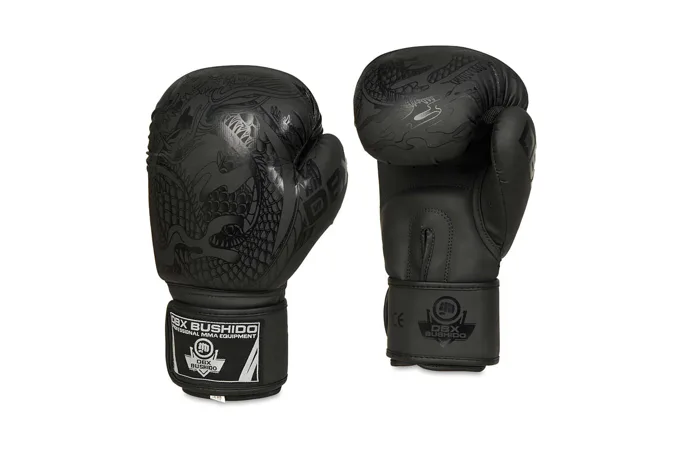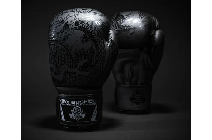 Boxerské rukavice DBX BUSHIDO B-2v18 jsou vyrobeny ze zpevněné, syntetické kůže PU FELEX s matným povrchem podšité tkaninou Blacktop, která silně odolává poškozením.