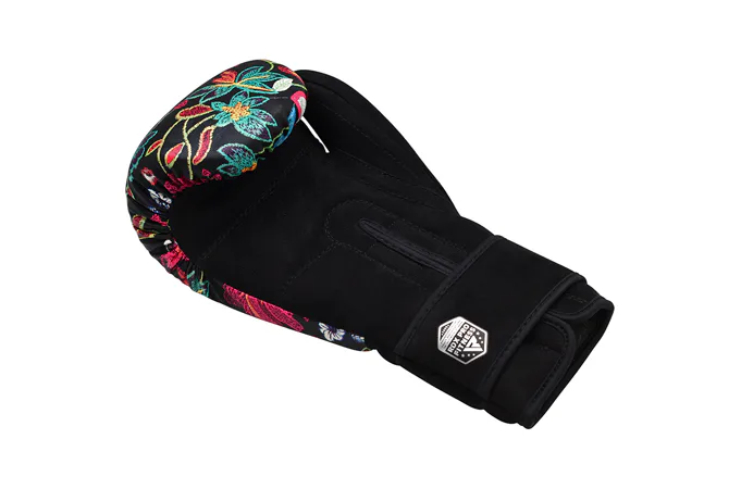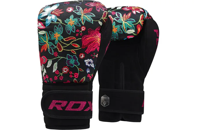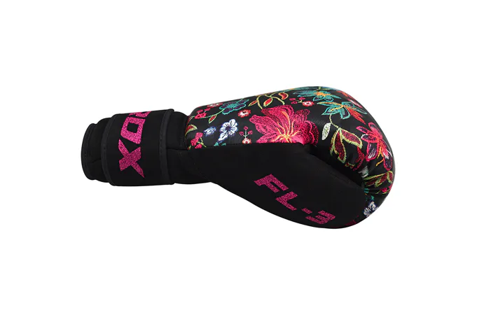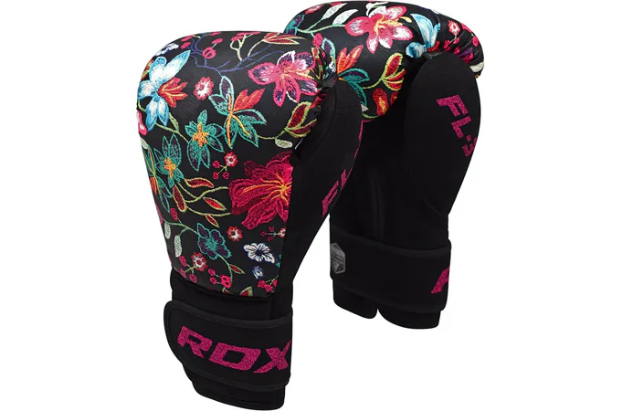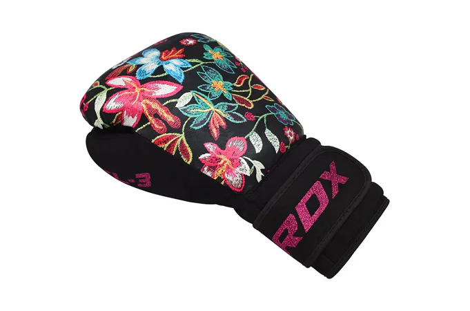 Boxerské rukavice RDX FL-3 floral/black možná vypadají jemně, nejsou ale pro slabé povahy. Tyto sparingové rukavice jsou ručně vyrobeny z jedinečné kůže Flora Skin s dvojitými švy, které zaručují pevné a odolné rukavice. Anatomický střih rukavic je speciálně přizpůsoben ženským rukám, které mají obvykle užší šířku kloubů a nižší hustotu kostí.