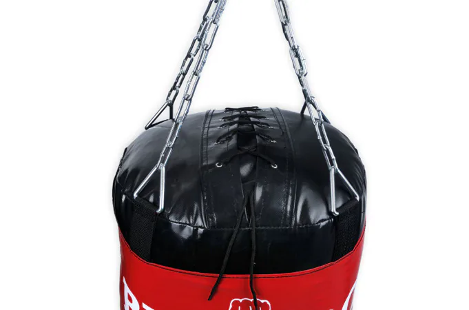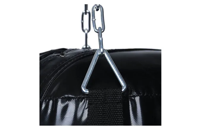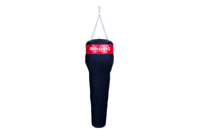 Profesionální boxovací hákový pytel DBX BUSHIDO 140 x 45 až 30 cm. Délka řetezů při zavěšení 45 cm (díky karabině lze nastavit i kratší délku). Díky profilovanému tvaru je pytel vhodný pro trénink úderů lokty a háků.
