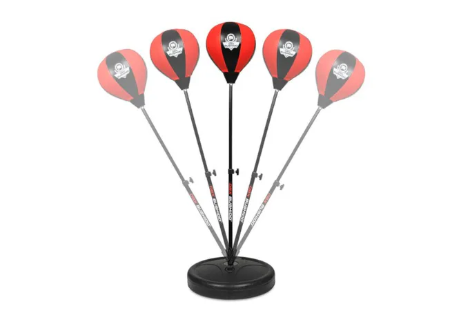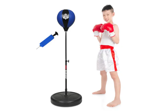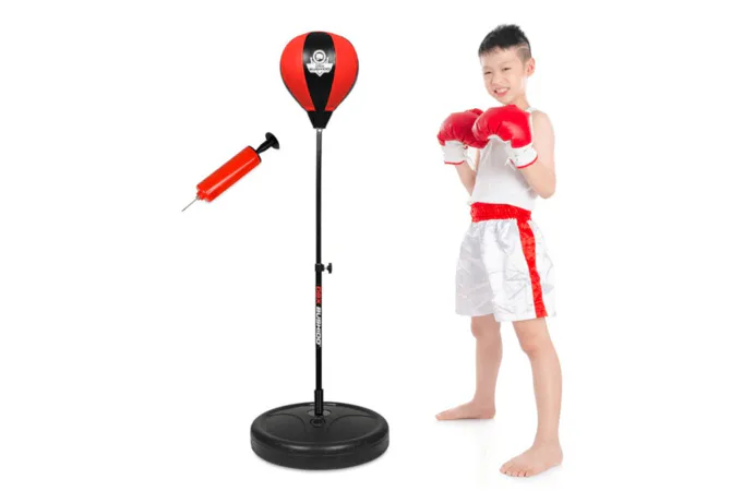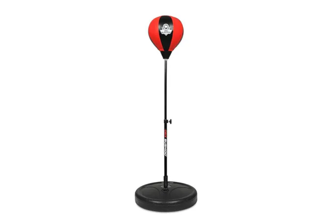 Základna stojanu se pro maximální stabilitu naplňí pískem, nebo vodou. Výška hrušky je plynule nastavitelná v rozsahu 72 - 102 cm a je tak vhodná pro děti od 4 let do dosažení výšky 140 cm. O reflexi hrušky se stará vinutá pružina ve spodní části stojanu. Samotná hruška je vyrobena ze zpevněné, syntetické kůže. Šíře 18 cm a výška 23 cm je ideální právě pro malé "rváče". Součástí balení je také pumpička pro pohodlné nafouknutí hrušky.