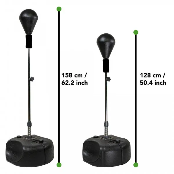 Boxovací hruška volně stojící TUNTURI Speedball vhodná pro zlepšení hbitosti, rychlosti a koordinace pro děti i dospělé. Základna je vyrobena z odolného plastu a může být naplněna vodou nebo pískem, takže stojí stále pevně na zemi. Díky volitelné výšce hruška vyhovuje různě vysokým osobám. Velmi odolná pružina v nastavitelné tyči poskytuje flexibilní zpětný ráz.