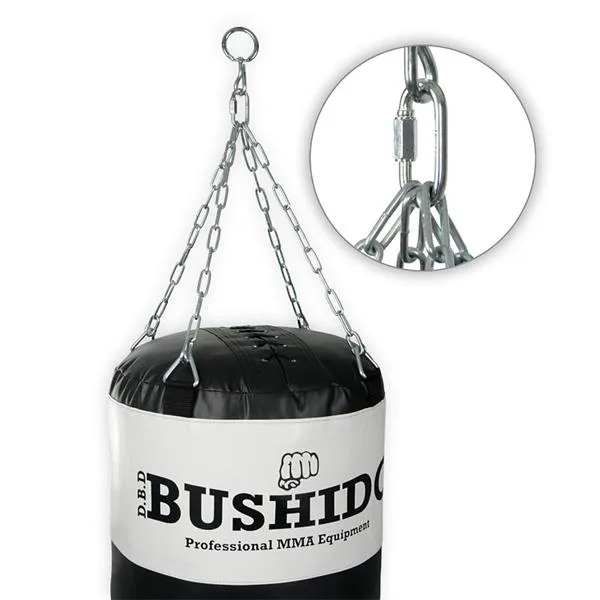 Profesionální boxovací pytel DBX BUSHIDO 160 x 40 cm. Délka řetezů při zavěšení 45 cm (díky karabině lze nastavit i kratší délku). Je vyroben z patentovaného 7-vrstvého materiálu s výbornou odolností.