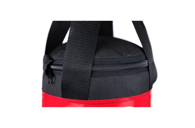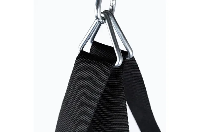 Pytel je vybaven 4 pevnými popruhy zakončenými ocelovými oky trojúhelníkového tvaru. Popruhy mají celkovou nosnost 200 kilogramů a zajišťují odolnost a bezpečnost při tréninku. Trojúhelníková oka zajišťují rovnoměrné protažení popruhů, nedeformují je a tím prodlužují jejich životnost. Popruhy jsou překryty manžetou z plavilu, který je chrání před poškozením během opravdu intezivních tréninků. Manžeta ve spodní straně pytle zase zvyšuje jeho pevnost a odpolnost vůči protržení.