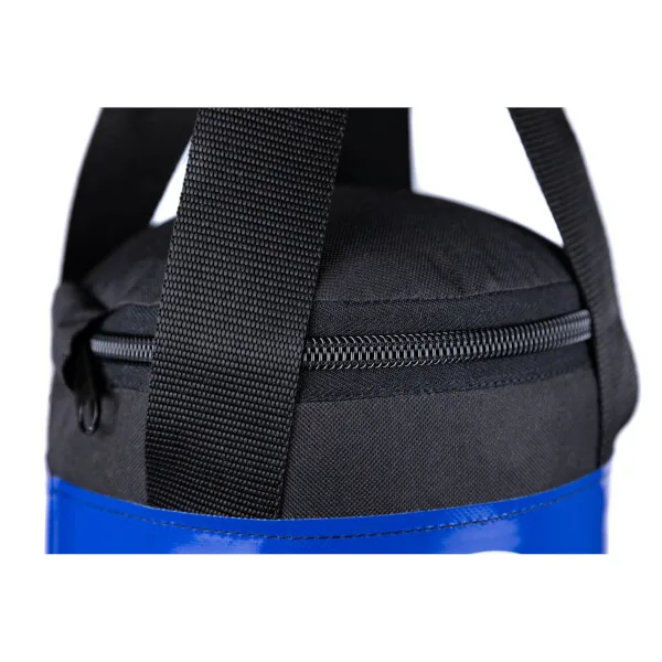 Pytel je vybaven 4 pevnými popruhy zakončenými ocelovými oky trojúhelníkového tvaru. Popruhy mají celkovou nosnost 200 kilogramů a zajišťují odolnost a bezpečnost při tréninku. Trojúhelníková oka zajišťují rovnoměrné protažení popruhů, nedeformují je a tím prodlužují jejich životnost. Popruhy jsou překryty manžetou z plavilu, který je chrání před poškozením během opravdu intezivních tréninků. Manžeta ve spodní straně pytle zase zvyšuje jeho pevnost a odpolnost vůči protržení.