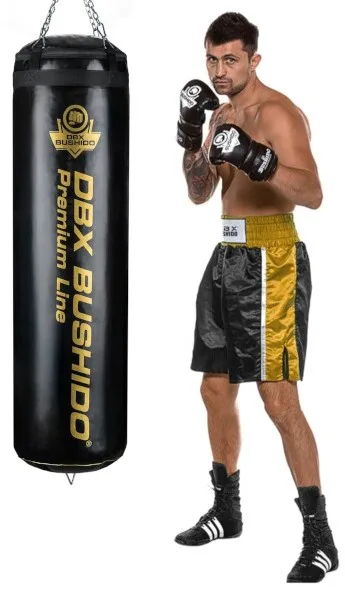 Profesionální boxovací pytel DBX BUSHIDO 140 x 40 cm v provedení Premium Line. Jde o rozměrově nejprodávanější pytel, který je oproti klasické variantě vylepšen ve čtyřech bodech. Je vyroben z pevnějšího materiálu (větší odolnost a životnost). Dno pytle je pevnější a řetězy mají šroubovací karabiny. Uživatel pytle určitě ocení nejen kvalitu, ale i designové zpracování.