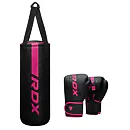 Boxovací pytel RDX Kara F6 dětský s rukavicemi je kompletní boxerská sada navržená speciálně pro děti. Obsahuje 60 cm dlouhý boxovací pytel, pár 6oz rukavic a závěsný popruh. Díky kombinaci kvalitního materiálu Maya Hide a měkké výplně je pytel dostatečně odolný, ale zároveň šetrný k dětským kloubům a kostem. Ideální pro domácí trénink, rozvoj koordinace, kondice a sebevědomí.