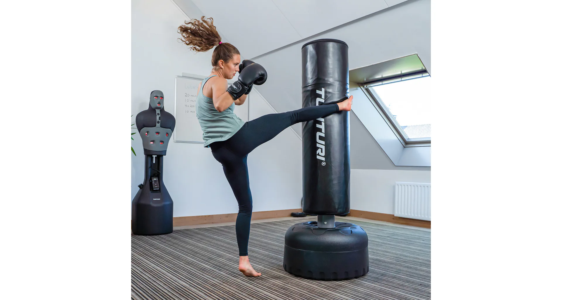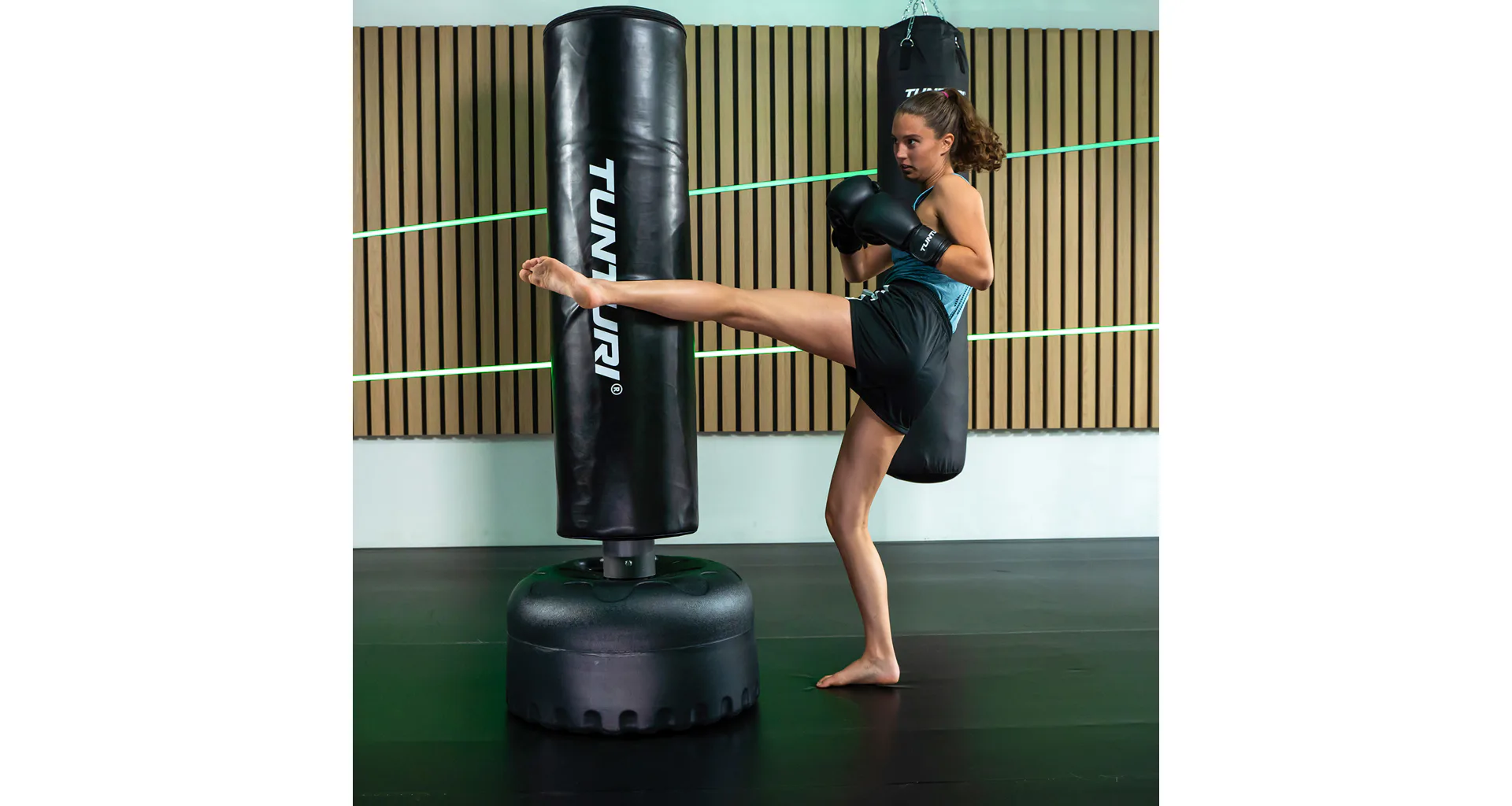 Volně stojící boxerský pytel TUNTURI Free Stand Punch Bag je ideálním sparingpartnerem pro dobrý trénink. Volně stojící pytel má flexibilní uchycení, které absorbuje a tlumí kopy a údery, takže vaše klouby nejsou příliš zatěžovány. Základ lze naplnit vodou, pískem nebo štěrkem. Protože je závaží dole, boxerská tyč zůstává pevně na svém místě a nekývá se rychle tam a zpět, a to ani při tvrdých kopech a úderech.