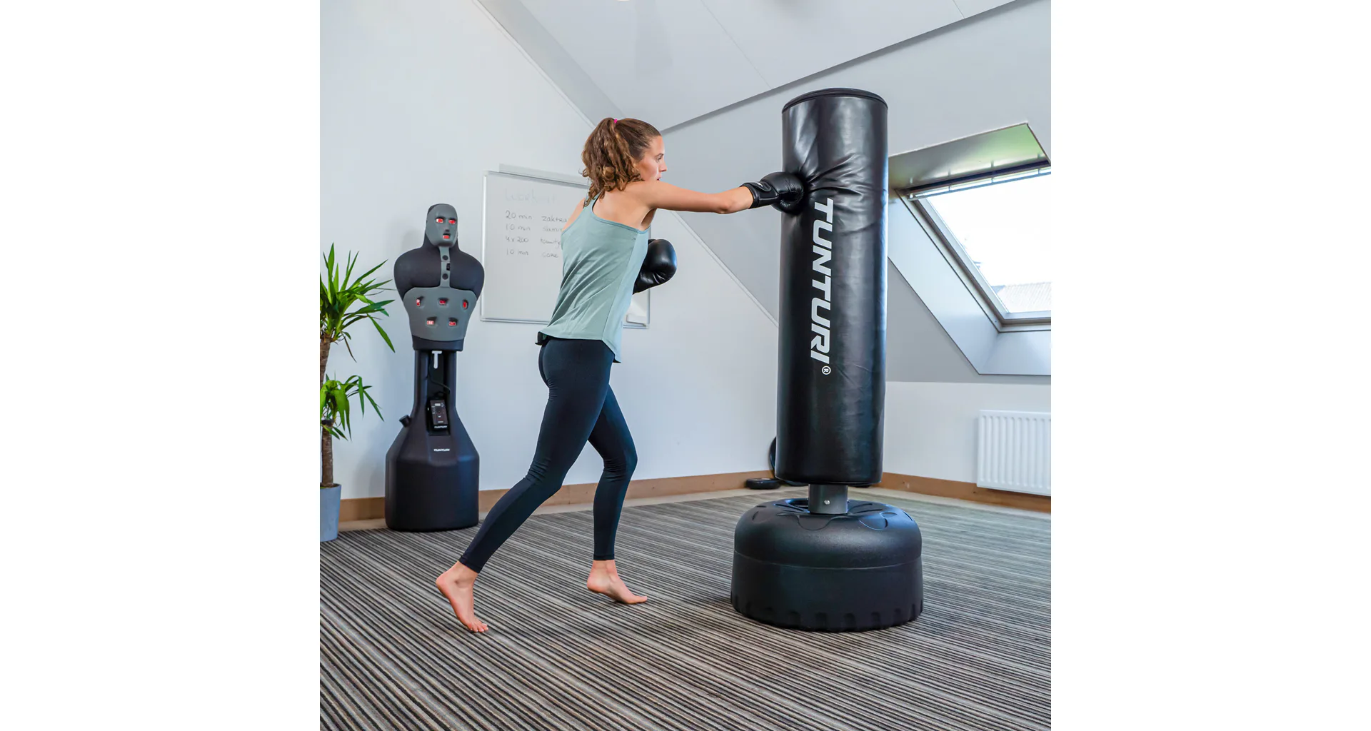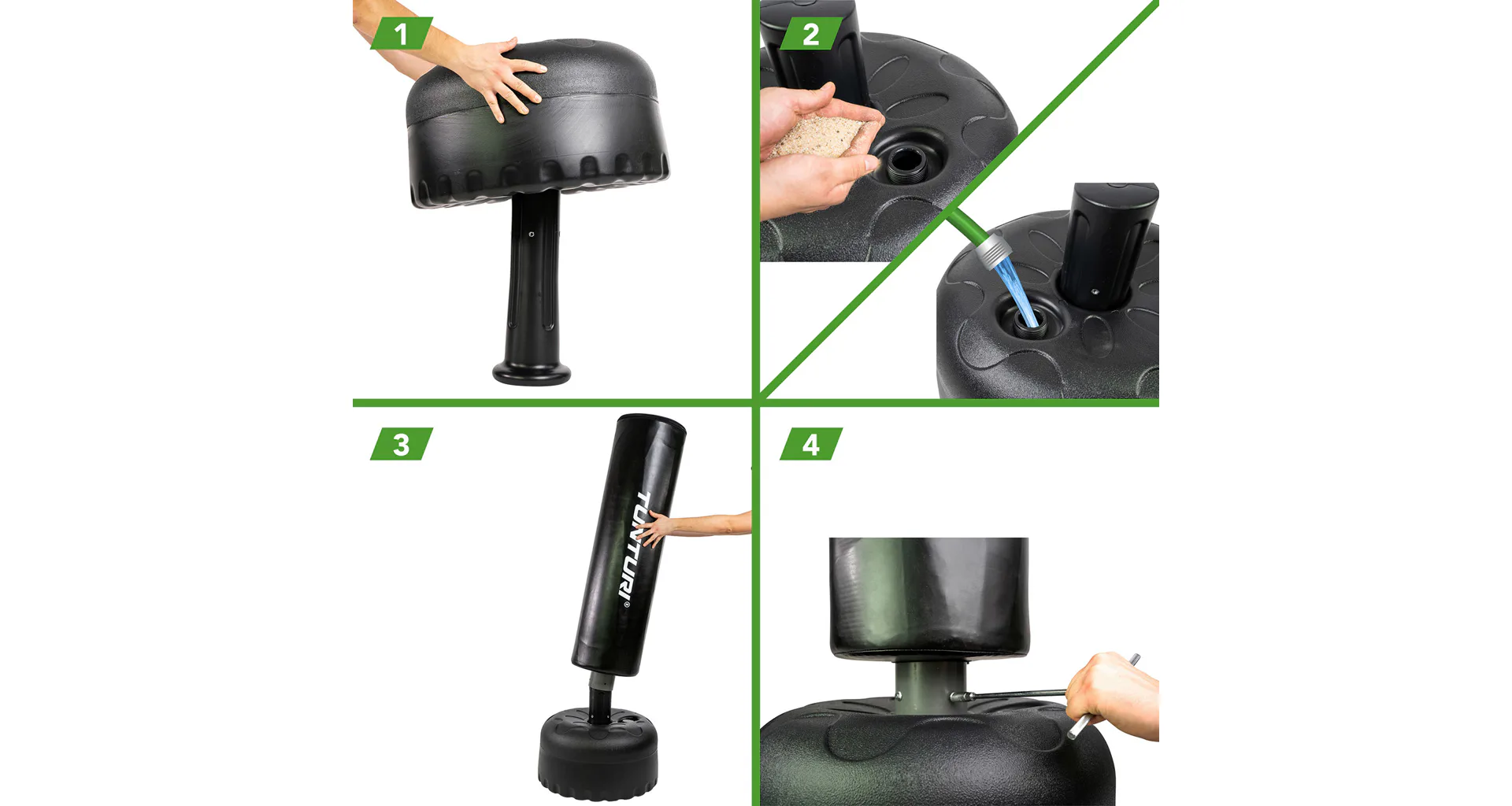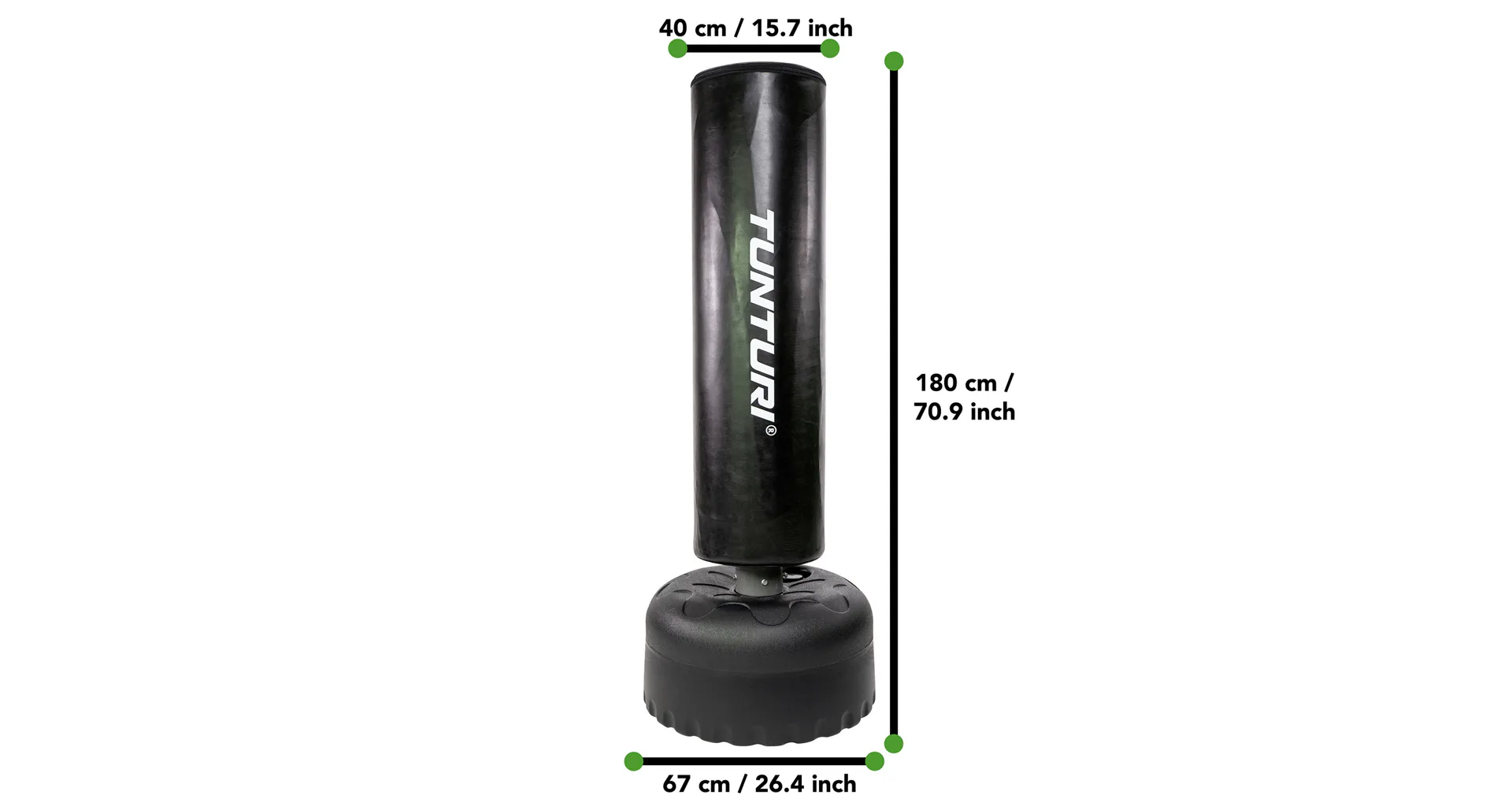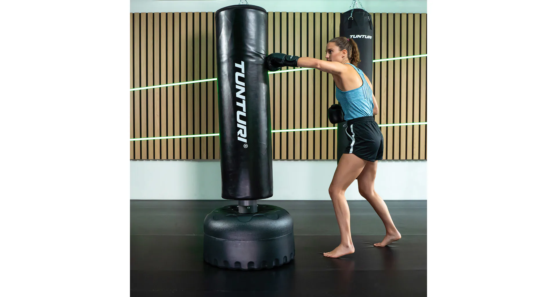Volně stojící pytel TUNTURI Free Stand Punch Bag má mnoho výhod. Nemusíte jej montovat a nemusíte se trápit s řetězy a háky, jako je tomu u klasického boxovacího pytle. Volně stojící pytel Free Stand Punch Bag TUNTURI můžete posunout, pokud vám překáží. A konečně: tam, kde se může boxovací pytel houpat sem a tam silnými údery a kopy, zůstává stacionární pytel pevně na svém místě, aniž by se houpala