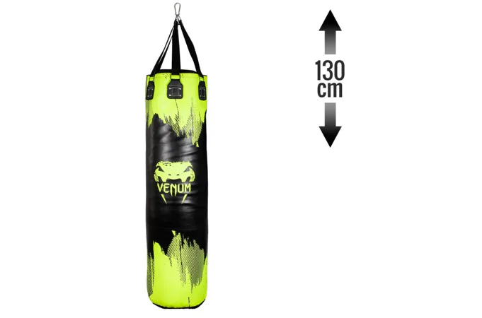 Boxovací pytel VENUM Hurricane 130 cm ve výrazném černo-žlutém provedení je ideální volbou pro intenzivní trénink doma i v tělocvičně. Díky své velikosti a hmotnosti je vhodný pro širokou škálu bojových sportů – od klasického boxu po MMA nebo Muay Thai.