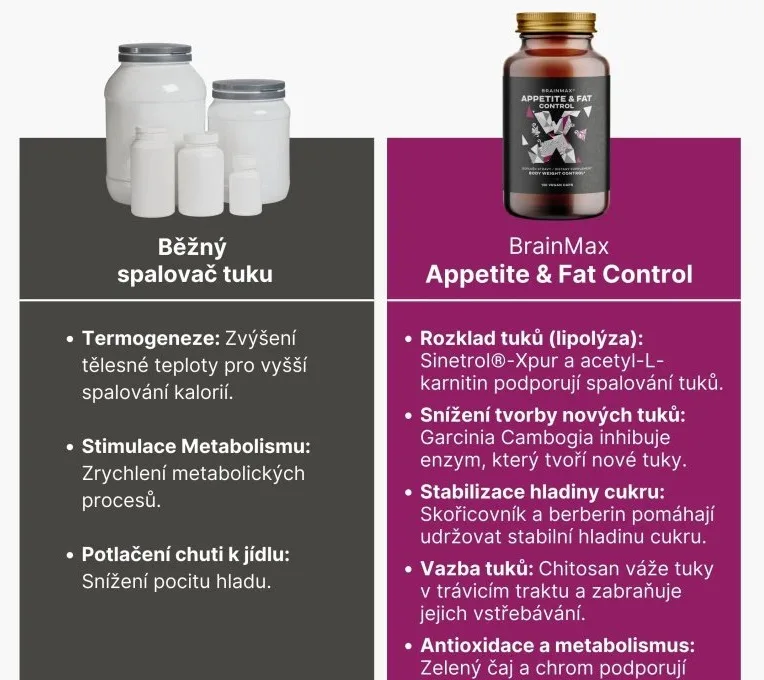 Vědecké poznatky a podložená fakta jsou klíčem pro vývoj našich doplňků stravy. BrainMax Appetite & Fat Control je navržen s evidence-based složením osmi účinných látek pro podporu hubnutí1, metabolismu tuků1,5, kontrolu hmotnosti1,3,5 a termogenezi3. Patentovaná směs Sinetrol®-Xpur C je nejlepší volbou pro hubnutí, neboť byl její účinek na redukci hmotnosti ověřen vědeckou studií. Podle poznatků profesora Hubermana jsou acetyl-l-karnitin, kofein, berberin a skořice vhodné jako účinné řešení pro podporu redukce hmotnosti. Tento produkt je ideální pro ty, kteří hledají efektivní podporu při snaze o zdravou tělesnou hmotnost.