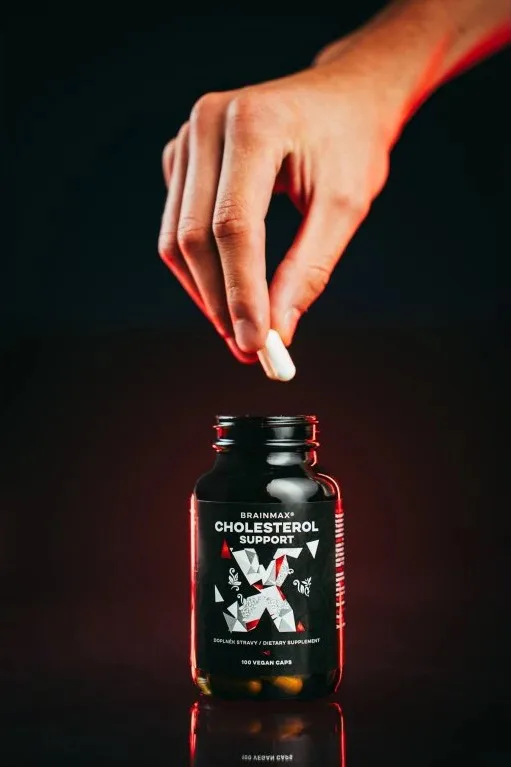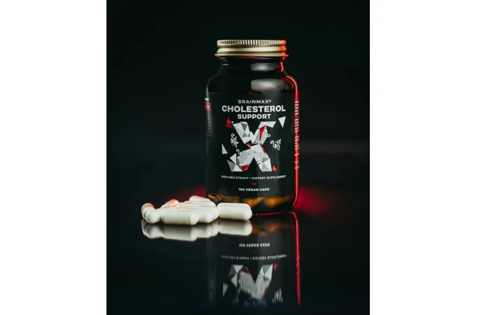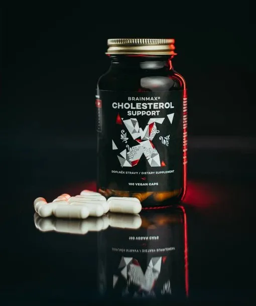 BrainMax Cholesterol Support je mimořádně komplexní formule 6 přírodních extraktů, díky čemuž podporuje normální hladinu cholesterolu v krvi, činnost srdce a kardiovaskulární soustavy. Jeho robustní konfigurace zahrnuje extrakty z česneku a červené kvasnicové rýže, fytosteroly z cukrové třtiny a betaglukany z ovsa, což jsou složky, u kterých byly jejich účinky potvrzeny vědeckými studiemi. Produkt neobsahuje žádné balastní látky.
