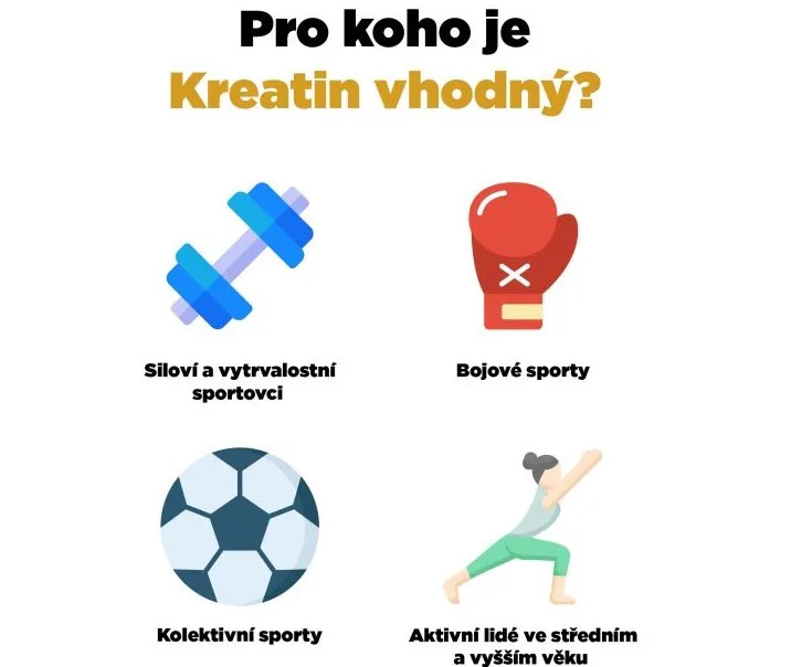 Kreatin je látka, která se přirozeně vyskytuje v lidském organismu. Nejvíce ho najdeme ve svalových buňkách (95 %), kde se podílí na přenosu a tvorbě energie. Kreatin si z části naše tělo tvoří samo, malé množství kreatinu přijímáme i prostřednictvím naší výživy (zejména v mase). Doplnění kreatinu zvyšuje fyzickou výkonnost a hladinu ATP, svalovou výbušnost a sílu, urychluje svalovou regeneraci a podporuje jejich růst. Kreatin může mít pozitivní vliv i na mozkové funkce a také eliminovat škody způsobené zvýšeným kortizolem.