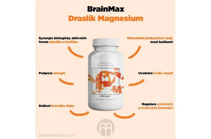 BrainMax Draslík Magnesium obsahuje 100 mg elementárního draslíku ve formě citrátu a 60 mg elementárního hořčíku ve formě malátu. Neobsahuje žádné balastní látky (éčka), pouze draslík a hořčík a to ve formách, které jsou pro tělo velmi dobře využitelné. Produkt je vhodný i pro vegany.