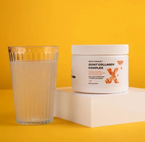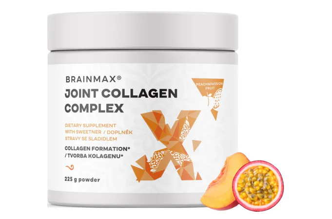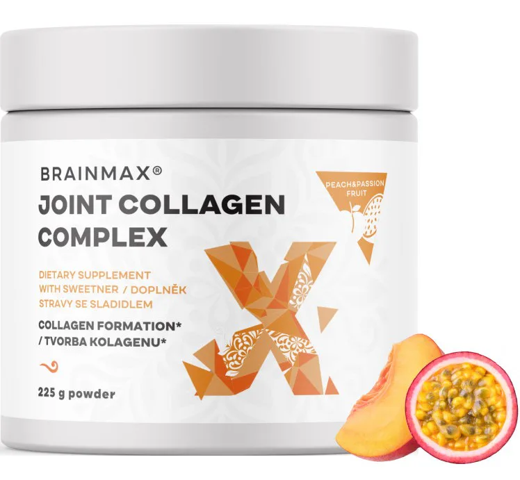 BrainMax Joint Collagen Complex je funkční kolagenový nápoj s osvěžující příchutí broskev & marakuja, který kombinuje hydrolyzovaný rybí kolagen Naticol®, MSM, kyselinu hyaluronovou a vitamín C ve formě askorbátu vápenatého. Vytvořen pro každodenní podporu kloubů, kostí a přirozené syntézy kolagenu.