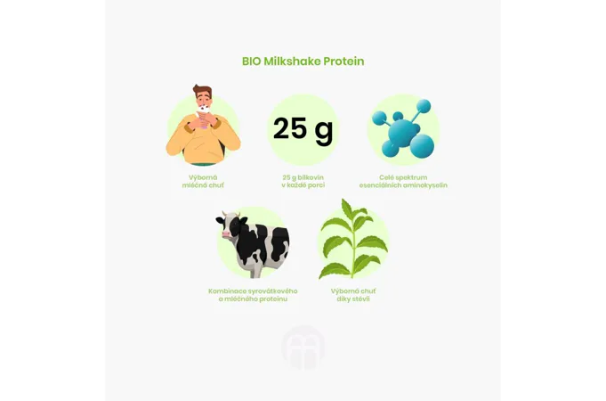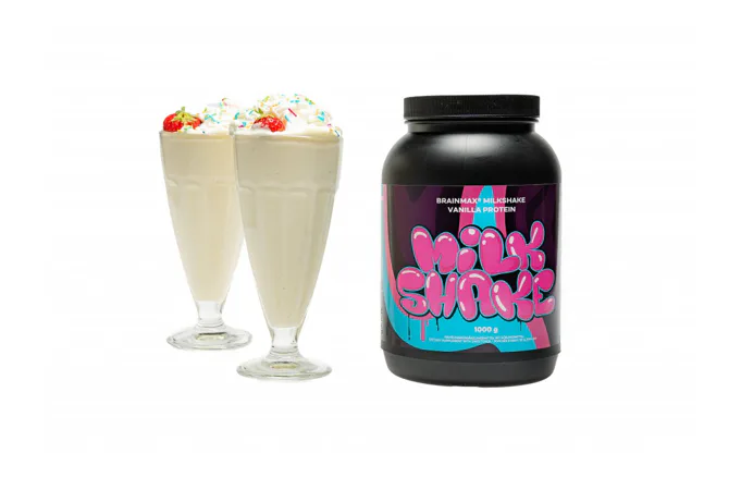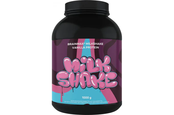 BrainMax Milkshake Protein. Bohatá našlehaná pěna a krémová konzistence nového milkshake proteinu se stévií má chuť, která tě dostane do kolen. V každé porci doplníš 25 g bílkovin z té nejlepší BIO syrovátky a BIO mléčného proteinu. Díky tomu milkshake obsahuje celé spektrum potřebných aminokyselin a navíc výborně chutná. Neobsahuje žádný přidaný cukr, sukralózu nebo umělé aroma.