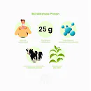 Složení: (70 %) syrovátkový proteinový koncentrát*, (22 %) mléčný proteinový koncentrát*, přírodní aroma, zahušťovadlo: guma guar* (vláknina), sladidlo: stévie, (0,2 %) mletá vanilka*.* z ekologického zemědělství. Obsahuje 95 % surovin zemědělského původu v BIO kvalitě. Minimální trvanlivost na obalu.