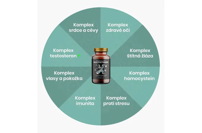 Multivitamín je bohatý na extrakty z bylin, chelátové minerály a patentované vitamíny které podpoří libido, normální hladinu test0steronu, reprodukční systém, zdraví prostaty, štítné žlázy, očí, pleti, vlasů, kostí, zubů, svalů, ale také zdraví srdce i cév a to díky obsahu koenzymu Q10, draslíku a hořčíku.