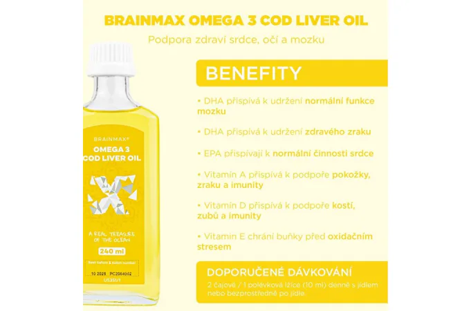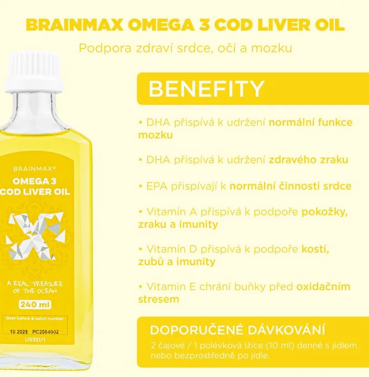 Prémiový rybí olej z jater divokých tresek, které jsou udržitelně loveny a šetrně zpracovány na Islandu. Kvalitu oleje zaručují čisté islandské vody a jeho přirozená ochrana před znehodnocením oxidací z něho dělá jednu z nejlepších voleb pro doplňování omega 3 mastných kyselin DHA a EPA do buněk. S tímto olejem můžete spolehlivě zlepšit či udržet optimální poměr omega 3:6 a podpořit zdraví mozku i kardiovaskulární soustavy. Olej z tresčích jater obsahuje přirozeně se vyskytující vitamín A i D, proto je vhodný pro děti, dospělé i seniory. Vitamín A totiž podporuje vstřebávání vitamínu D. Olej obsahuje také vitamin E pro ochranu před oxidativním stresem.