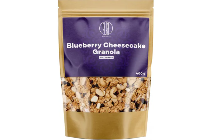 Představujeme vám dokonalou harmonii chutí v poctivě zapečené granole. Do BrainMax Pure Blueberry Cheesecake Granoly jsme vybrali pouze ty nejkvalitnější suroviny a nepřidali žádné zbytečné konzervanty, cukr ani barviva.