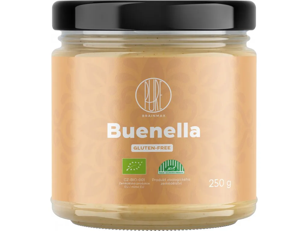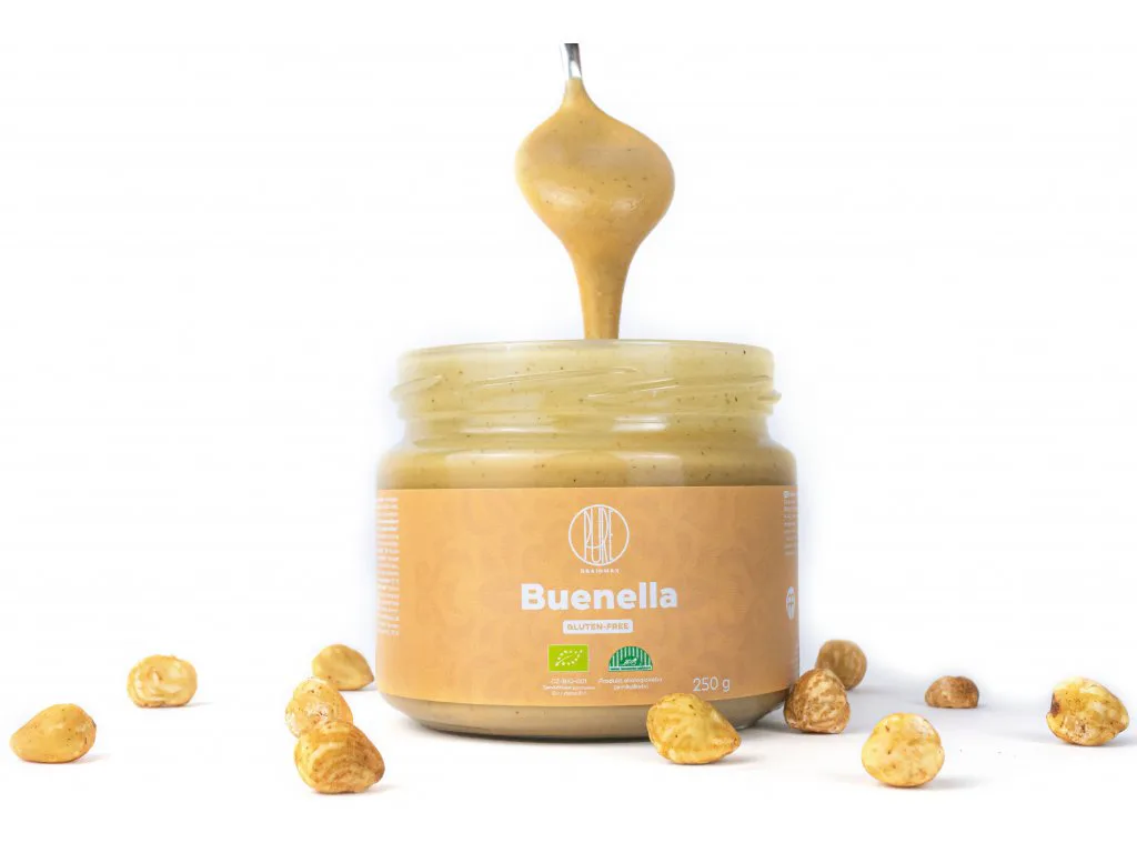 Nejkvalitnější lískové ořechy v BIO kvalitě společně s prvotřídní BIO bílou čokoládou, chuť je tak vynikající, že zaručeně nezůstanete u jedné lžičky. Buenella je ze 78% jemný lískooříškový krém smíchaný s bílou čokoládou, což z ní vytváří doslova návykovou látku.