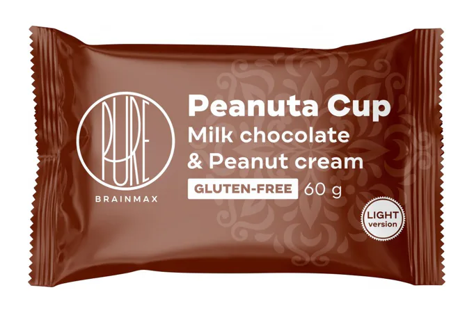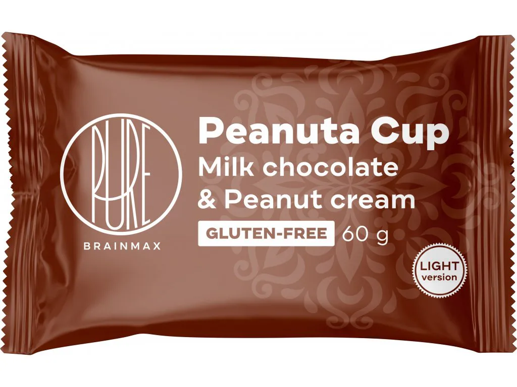 BrainMax Pure Peanuta Cup je vynikající čokoládový košíček z mléčné čokolády, který je plný lahodného arašídového krému. Je nabitý bílkovinami a jen se 3 g cukru! Navíc má každý košíček téměř 11 g bílkovin! Toho jsme docílili především kvalitním syrovátkovým BIO proteinem. Pro vyváženou sladkou chuť jsme použili ty nejlepší přírodní sladidla, kterými jsou maltitol a erythritol. Navíc 59% ingrediencí pochází z BIO produkce. BrainMax Pure Peanuta Cup je stvořen pro ty, kteří si chtějí pochutnat o trošku zdravěji.