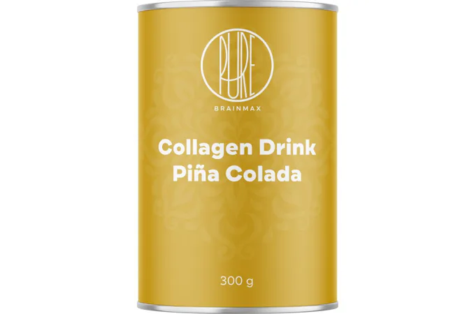 BrainMax Pure Collagen je nápoj z hydrolyzovaného hovězího grass-fed kolagenu I. a III. typu s příchutí piña colady obohacený o BIO Baobab, který je bohatým zdrojem přírodního biodostupného vitamínu C. Vitamín C zlepšuje absorpci a využitelnost kolagenu. Produkt je slazen a ochucen přírodním aroma a stévií. Je tedy kompletně bez syntentických sladidel, aroma a balastních látek. Nápoj je spojením maximální využitelnosti výhod kolagenu a osvěžující chuti.