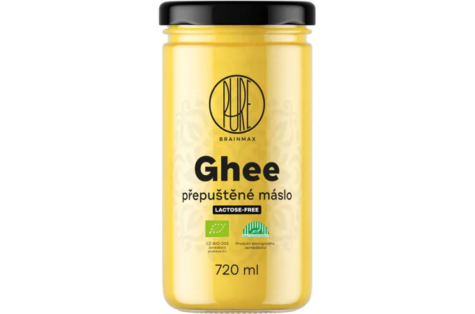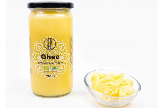 Ghí je 100% čistý máselný tuk, který je zbaven vody. Má příjemnou máslovou vůni a velmi intenzivní chuť s lehkým oříškovým aroma. Na výrobu jsme použili certifikované BIO máslo, zpracované z kvalitní kravské smetany. Ghí je oproti klasickému máslu lépe stravitelnější, neobsahuje laktózu ani mléčnou bílkovinu.
