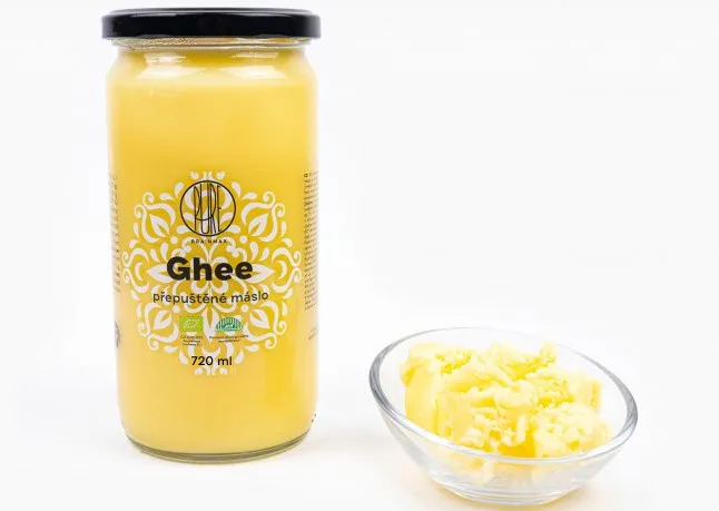 Ghí je 100% čistý máselný tuk, který je zbaven vody. Má příjemnou máslovou vůni a velmi intenzivní chuť s lehkým oříškovým aroma. Na výrobu jsme použili certifikované BIO máslo, zpracované z kvalitní kravské smetany. Ghí je oproti klasickému máslu lépe stravitelnější, neobsahuje laktózu ani mléčnou bílkovinu.