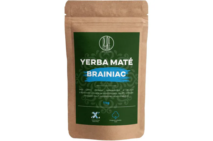 Směs kvalitní brazilské yerby a bylin pro posílení myšlení a koncentrace. Yerba maté v kombinaci s ginkgo bilobou zajistí mnoho energie do práce i učení a to bez burnout efektu, který je provázený pitím kávy. Další výraznou předností směsi Brainiac je velmi jemná a osvěžující chuť. Pro tuto směs yerby byly použity pouze lístky brazilské yerby, takže se nemusíte bát ucpávání bombilly nebo nepříjemné nahořklé chuti. Ať už s yerbou začínáte nebo jste pokročilý uživatel, Brainiac yerba by neměla chybět ve vašem arsenálu.