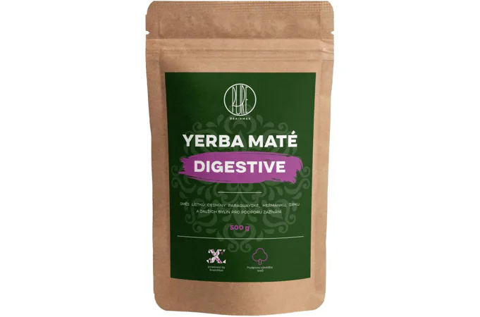 Nová yerba mate Digestive obohacená o divoký šeřík, semena fenyklu, moruše, heřmánku, šípku napomáhá celému trávicímu systému a podporuje regulaci tělesné hmotnosti. Fenykl spolu s heřmánkem působí proti trávicím potížím, heřmánek má zklidňující účinky a napomáhá při bolestech žaludku a plody šípku působí jako prevence před infekcí a podporuje soustředění. Díky divokému šeříku yerba Digestive reguluje funkce metabolismu a podporuje redukci tělesné hmotnosti.