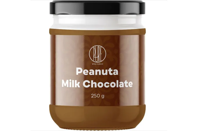 BrainMax Pure Peanut Butter Milk Chocolate je arašídový krém neboli arašídové máslo, který navíc obsahuje značnou porc kvalitní mléčné čokolády. Krém má vynikající chuť a také důležité makroživiny. Pouze rozemleté arašídy s čokoládou, které dohromady tvoří krémovou konzistenci a jedinečnou kombinací chutí. Krém obsahuje 75% ingrediencí v BIO kvalitě.