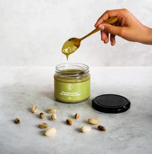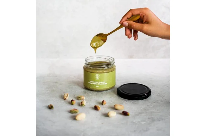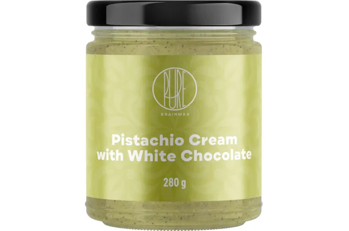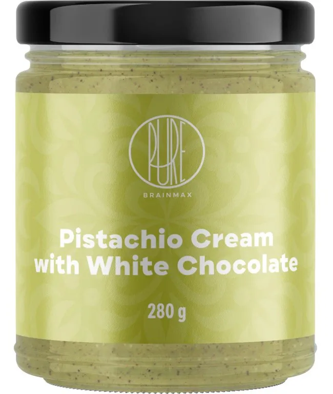Neodolatelná kombinace pistácií a jemné bílé čokolády v perfektně vyváženém krému. Pistáciový krém s bílou čokoládou zaujme svou hedvábnou texturou a lahodnou chutí, která potěší všechny milovníky ořechových krémů. Obsahuje 100 % BIO surovin ve spojení kvalitních živin z pistácií a svůdnosti bílé čokolády. Krém je skvělý na pečivo, do dezertů nebo jen tak na lžičku.