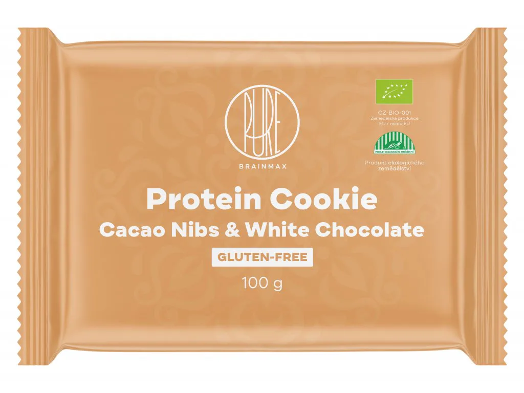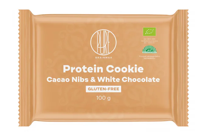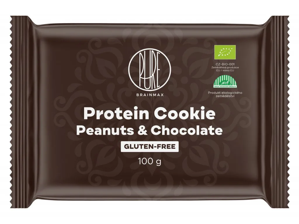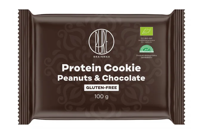 BrainMax Pure Protein Cookie je proteinová sušenka vyrobená z BIO syrovátkového a BIO mléčného proteinu. Každá sušenka obsahuje 22 g bílkovin a více než 12 g vlákniny. V sušence jsou kousky křupavých a lahodných kousků dle příchutě, díky čemuž má sušenka příjemnou strukturu. Cookieska je měkká, vláčná a 100% použitých ingrediencí je v BIO kvalitě. Na sušence si tak pochutnají i ti nejnáročnější!