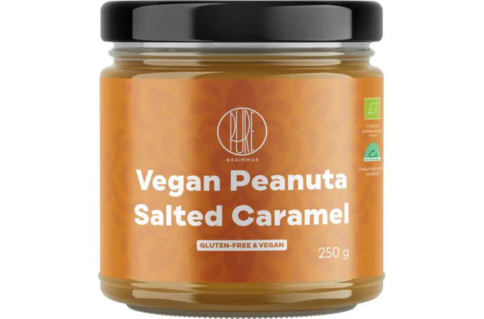BrainMax Pure Vegan Peanuta je lahodný arašídový krém z organických arašídů, u kterého jsme chuť doladili porcí karamelu se špetkou soli. Krém má vynikající sladko-slanou chuť a obsahuje pouze rostlinné ingredience, navíc je celý v BIO kvalitě.