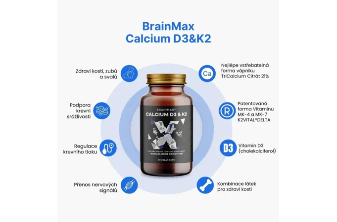 Výhody BrainMax vápník s vitamínem D3 & K2: