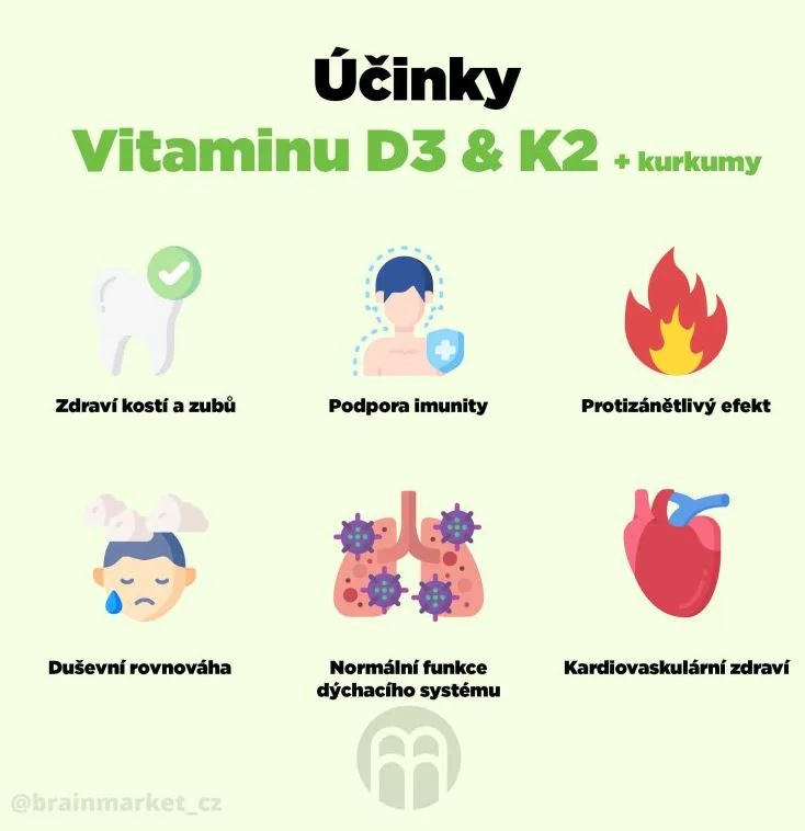 Přednosti produktu BrainMax Vitamin D3 & K2: