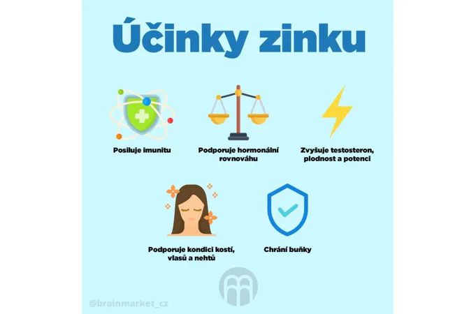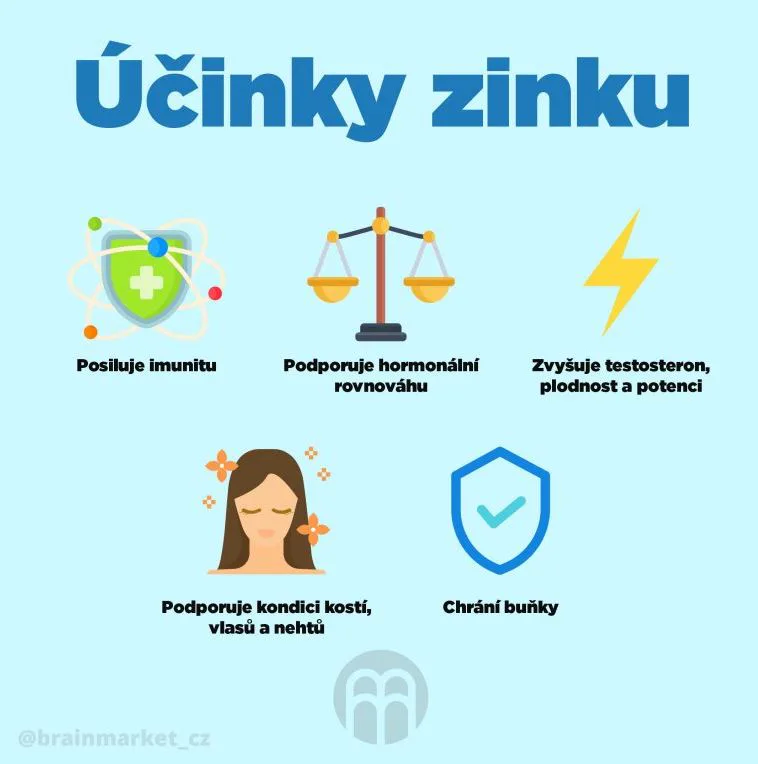 Zinek podporuje imunitní systém, hormonální rovnováhu, plodnost, zdraví kostí a v neposlední řadě společně s mědí chrání buňky před oxidativním stresem.