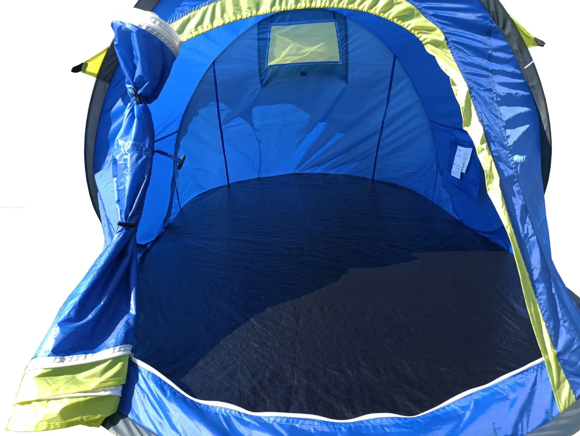 Stan stačí vyndat z obalu, hodit na zem a on se sám postaví díky pružným sklolaminátovým nosným prutům. Demontáž je dobré provádět podle návodu, aby nedošlo k polámání sklolaminátových průtů.