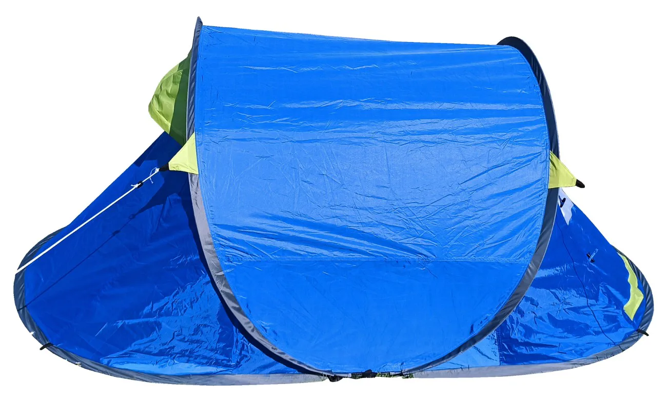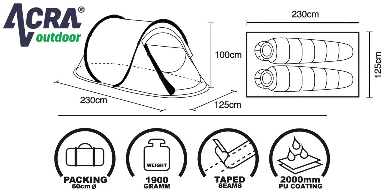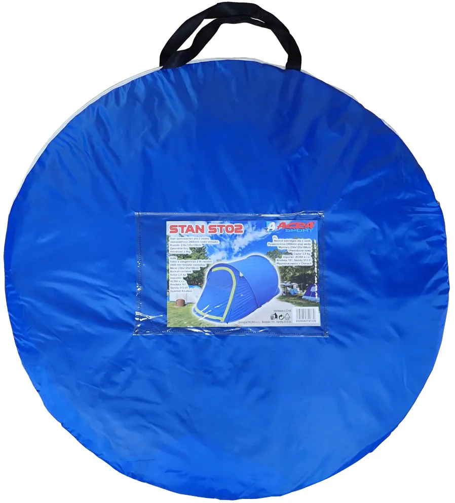 Stan SAMOSTAVĚCÍ pro 2 osoby. Jedná se o velmi skladný a jednoduše postavitelný stan. Navléknuté sklolaminátové pruty po vyndání z obalu stan kompletně postaví. Pak už jen stačí stan upevnit kolíky k zemi a dopnout plášť stanu kotvícími šňůrami kolem dokola.