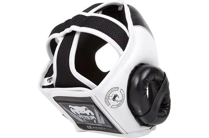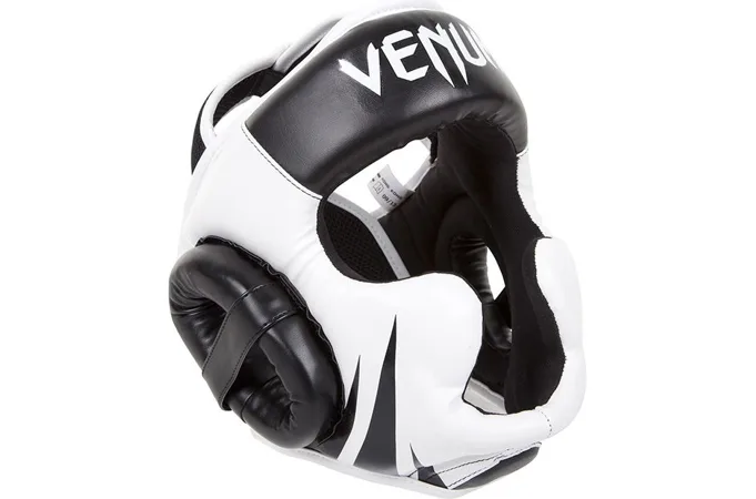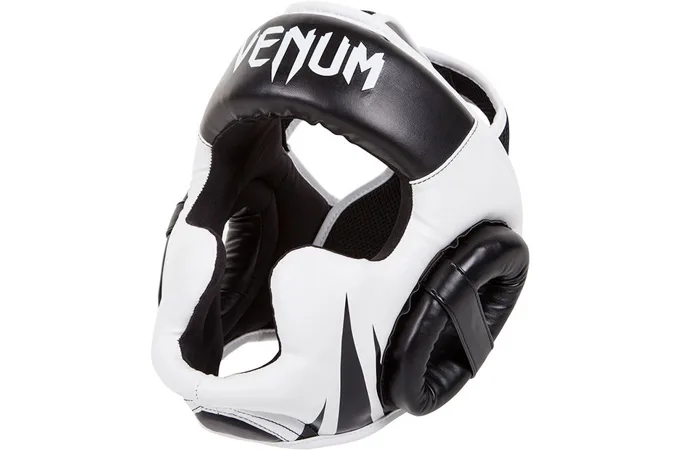 Chránič hlavy Challenger 2.0 od značky VENUM je vyroben z umělé kvalitní kůže, pro vysokou odolnost je vyplněna trojitou pěnou, která dokonale pohlcuje nárazy. Přilba je navržena v souladu s bezpečnostními standardy a zajišťuje tak bezpečnost a komfort během zápasu, tréninku či nácviku se sparring partnerem. Tvar helmy je navržen tak, aby byly chráněny lícní kosti, oči, nos a uši. Pro zajištění nejvyšší kvality ochrany je chránič hlavy Challenger 2.0 vyroben z kvalitní umělé kůže, která poskytuje pohodlí při očekávaných intenzivních úderech v oblasti hlavy. Pokrytí hlavy a obličeje bylo navrženo tak, aby bylo možné kombinovat úplnou ochranu hlavy a zároveň udržet 180 stupňový výhled na svého soupeře.