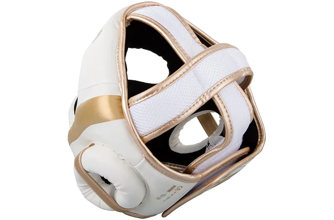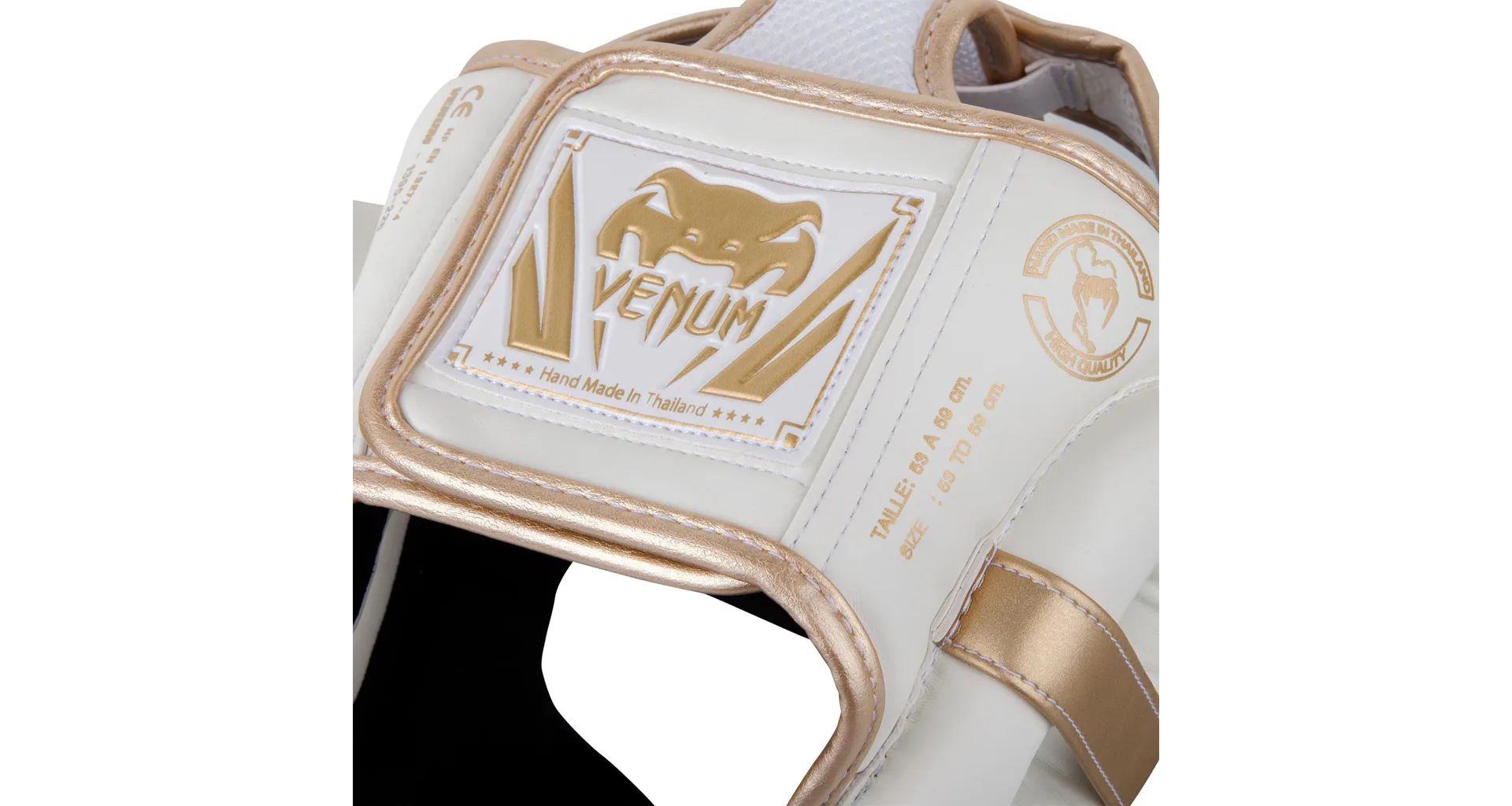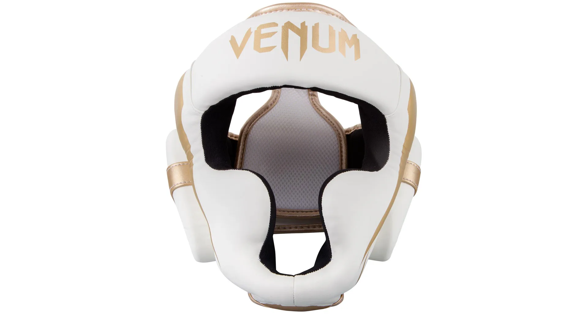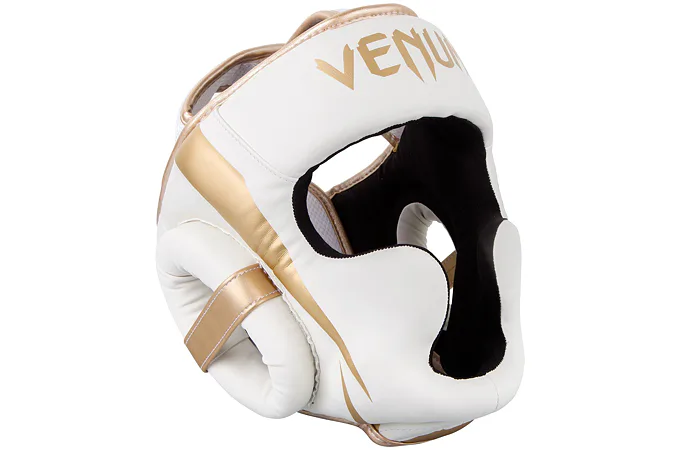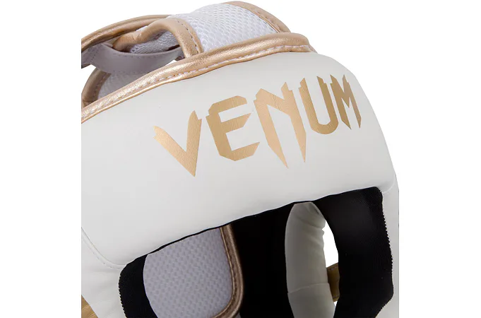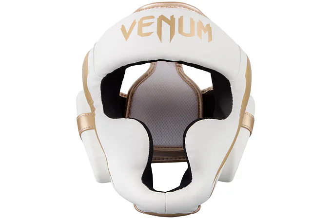 Chránič hlavy Elite od značky VENUM je vyroben ze 100% semi-kůže, pro vysokou odolnost je vyplněna trojitou pěnou, která dokonale pohlcuje nárazy. Přilba je navržena v souladu s bezpečnostními standardy a zajišťuje tak bezpečnost a komfort během zápasu, tréninku či nácviku se sparring partnerem. Tvar helmy je navržen tak, aby byly chráněny lícní kosti, oči, nos a uši. Pro zajištění nejvyšší kvality ochrany je chránič hlavy Elite vyroben ze semi-kůže, která poskytuje pohodlí při očekávaných intenzivních úderech v oblasti hlavy. Pokrytí hlavy a obličeje bylo navrženo tak, aby bylo možné kombinovat úplnou ochranu hlavy a zároveň udržet 180 stupňový výhled na svého soupeře.