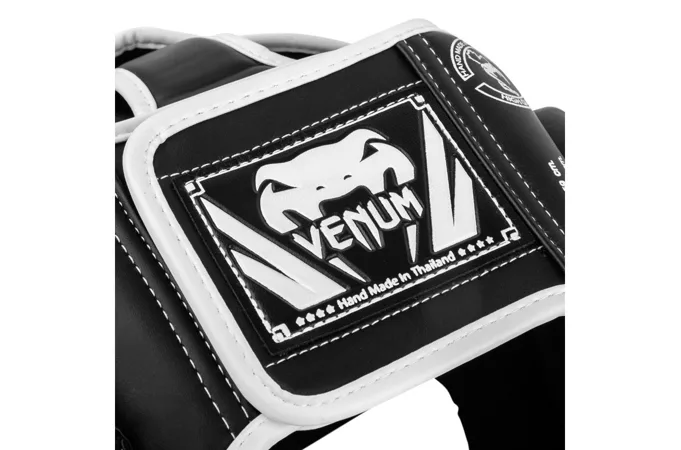 Chránič hlavy Elite od značky VENUM je vyroben ze 100% semi-kůže, pro vysokou odolnost je vyplněna trojitou pěnou, která dokonale pohlcuje nárazy. Přilba je navržena v souladu s bezpečnostními standardy a zajišťuje tak bezpečnost a komfort během zápasu, tréninku či nácviku se sparring partnerem. Tvar helmy je navržen tak, aby byly chráněny lícní kosti, oči, nos a uši. Pro zajištění nejvyšší kvality ochrany je chránič hlavy Elite vyroben ze semi-kůže, která poskytuje pohodlí při očekávaných intenzivních úderech v oblasti hlavy. Pokrytí hlavy a obličeje bylo navrženo tak, aby bylo možné kombinovat úplnou ochranu hlavy a zároveň udržet 180 stupňový výhled na svého soupeře.